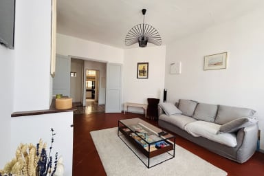 Cet appartement spacieux d’une capacité maximale de 6 personnes, au 3eme étage sans ascenseur, dispose d’une grande cuisine familiale tout équipée (lave-vaisselle, four et four à micro-ondes, réfrigérateur, plaques inductions, machine à café, grille-pain, bouilloire, etc.) et d’un vaste salon avec une vue imprenable sur le centre historique de Perpignan.